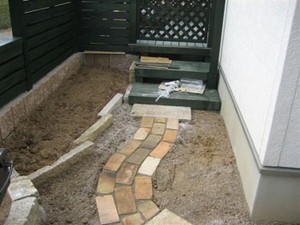 デッキ下の壁面は、ジョリパットで仕上げます。アクリル系の壁仕上げ材です。